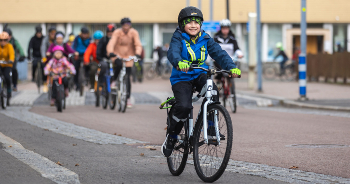 Iloisessa kulkueessa on mukana monenlaisia pyöriä ja musiikkia!